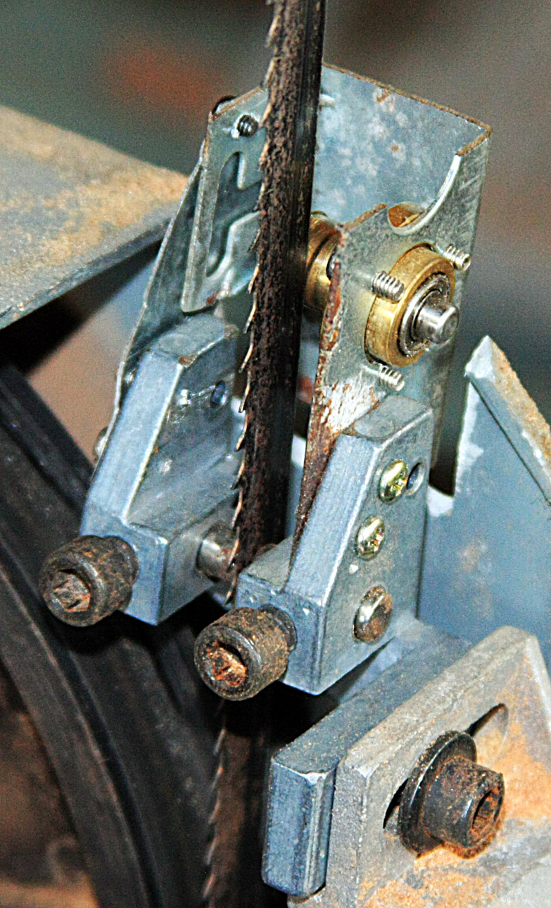 | An example of a jerry-rigged bracket for my bandsaw. It didn't last long as you would expect with brass pieces in the mix |